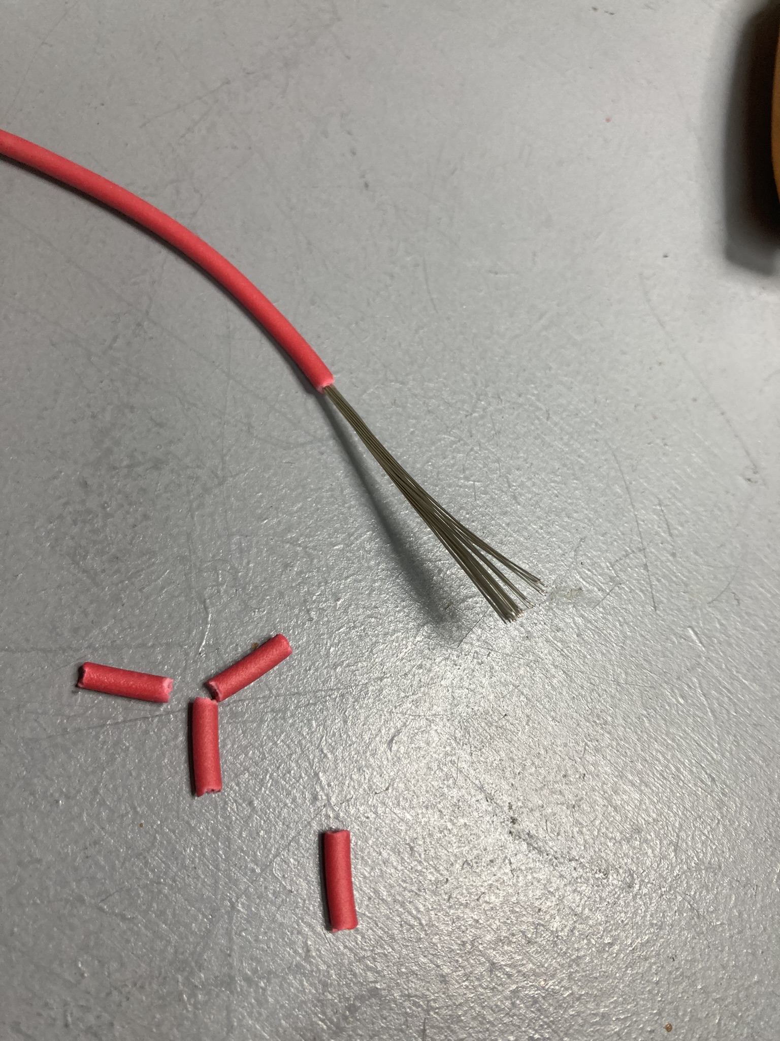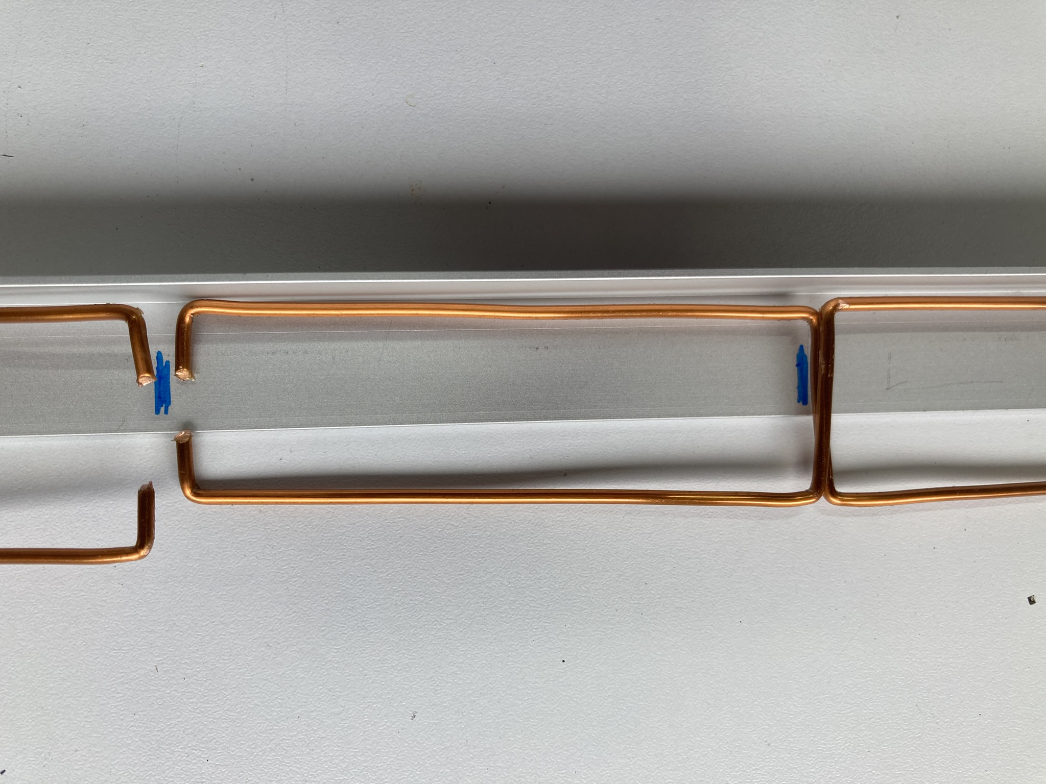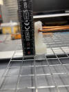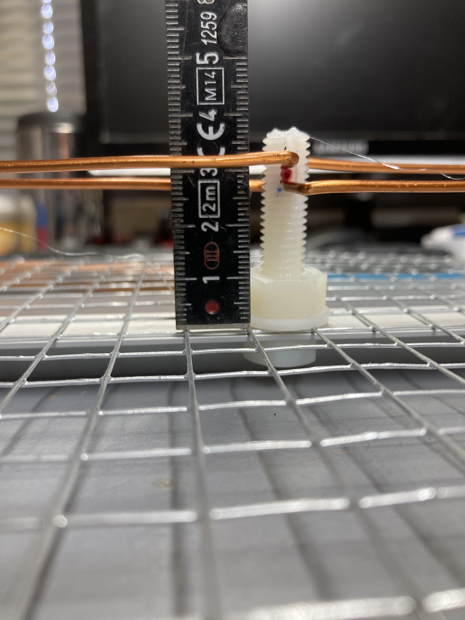 Fit spacers and elements. The end of the elements have spacers to raise the wire to 30mm height from mesh, the cross over elements have spacers between them at 30mm height. Cover all element mounting points in hot glue