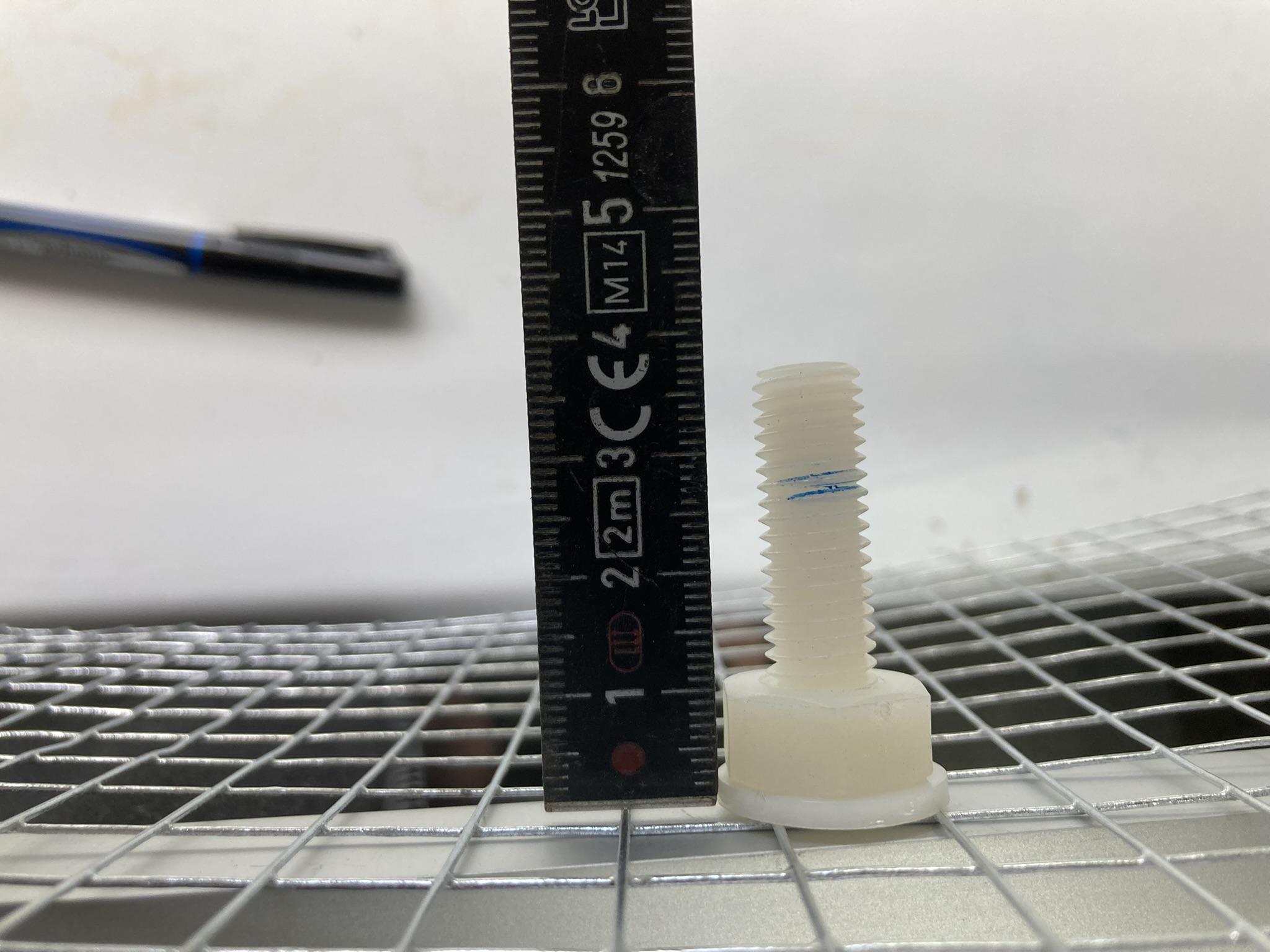 Mark position of supports punch and drill holes, make middle hole for co-ax 6mm diameter Insert bolts and mark 27mm up from mesh, mark all bolts the same, cut 2mm wide groove in bolts to the marked line